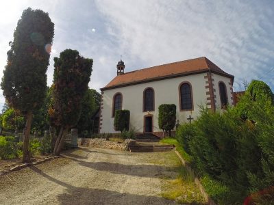 Chapelle Gensbourg d’inspiration romane vestige d’un village disparu au 108 rue du Nideck, domaine privé.