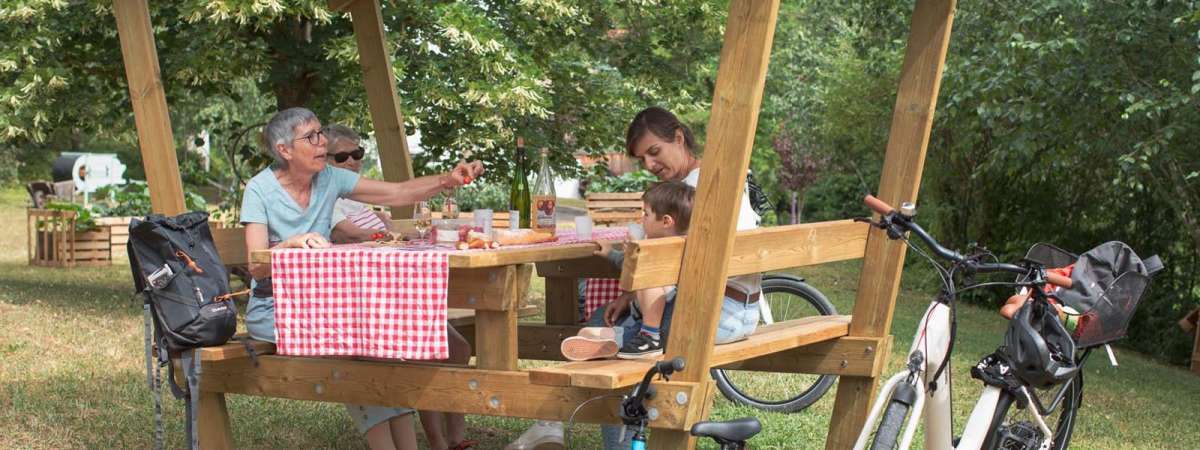 Partir en balade à vélo et s’offrir une pause bien méritée pour déjeuner avec un délicieux pique-nique. Cette table équipée d’un toit, vous offre un abri accueillant à l’abris du vent et de la pluie.