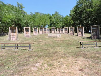 Der Kreuzweg besteht aus 15 Stationen (statt der üblichen 14). Jede ist ein großes, mehrfarbiges Flachrelief. Das Ganze tendiert zum Neoklassizismus.