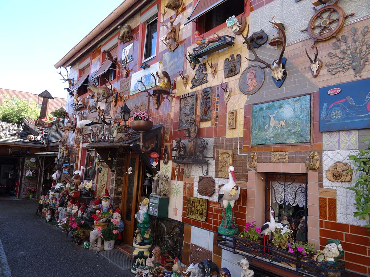 Toutes les sculptures ont une histoire à raconter comme la petite cabane avec des vitraux représente en fait la maison de la sorcière de Hansel et Gretzel.