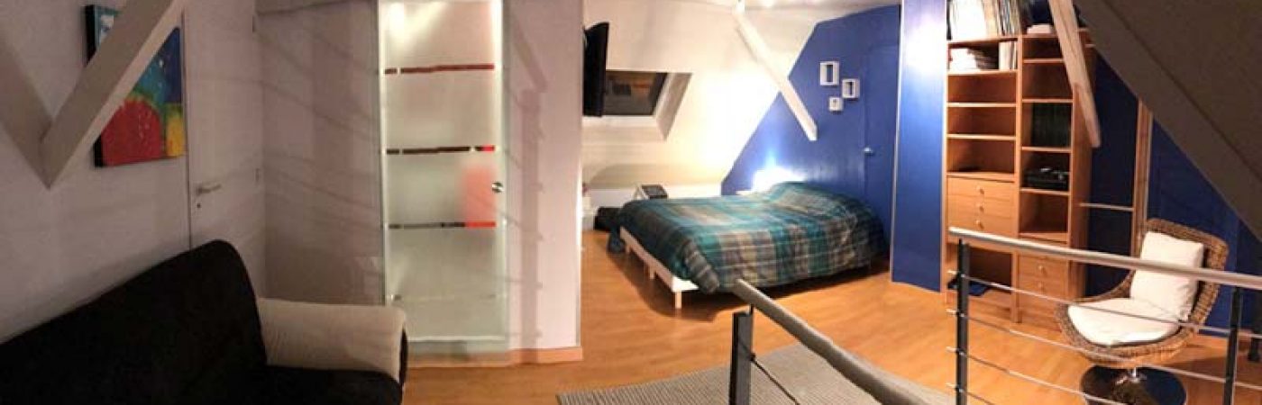 This pretty non-smoking guest duplex for 1 to 4 people occupies the 1st and 2nd floors of the house (no elevator). On the 1st level, it features a sofa that can be converted into a comfortable bed (90X190) as well as an extra bed (80X190), while the second level has a double bed (160X200) and a sofa that can be converted into a 90X200 bed. The bathroom with shower and WC is adjoining.