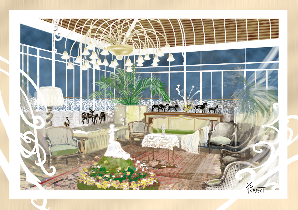 This veranda was home to a magnificent conservatory – the finishing touch to the residence where Ettore Bugatti hosted his guests. He went on to install a private cinema underneath this, catering for his love of westerns.
