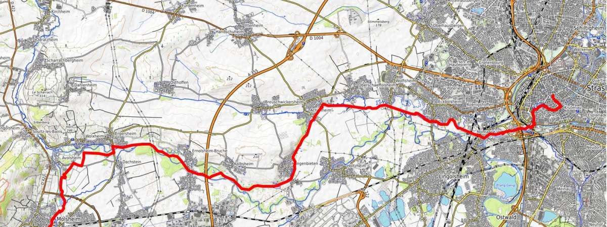L'étape n°4 Strasbourg-Molsheim traverse la Région Molsheim-Mutzig depuis Ernolsheim-Bruche jusqu'à Molsheim. Il permet de longer une partie du Canal de la Bruche puis de rejoindre la plus ancienne église d'Alsace à Avolsheim.